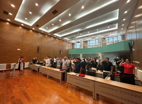 新党员在赵力的带领下面向党旗庄严宣誓,老党员集体重温入党誓词,砥砺初心使命。最后,全体党员高声合唱“没有共产党就没有新中国”,将庆祝活动推向高潮。