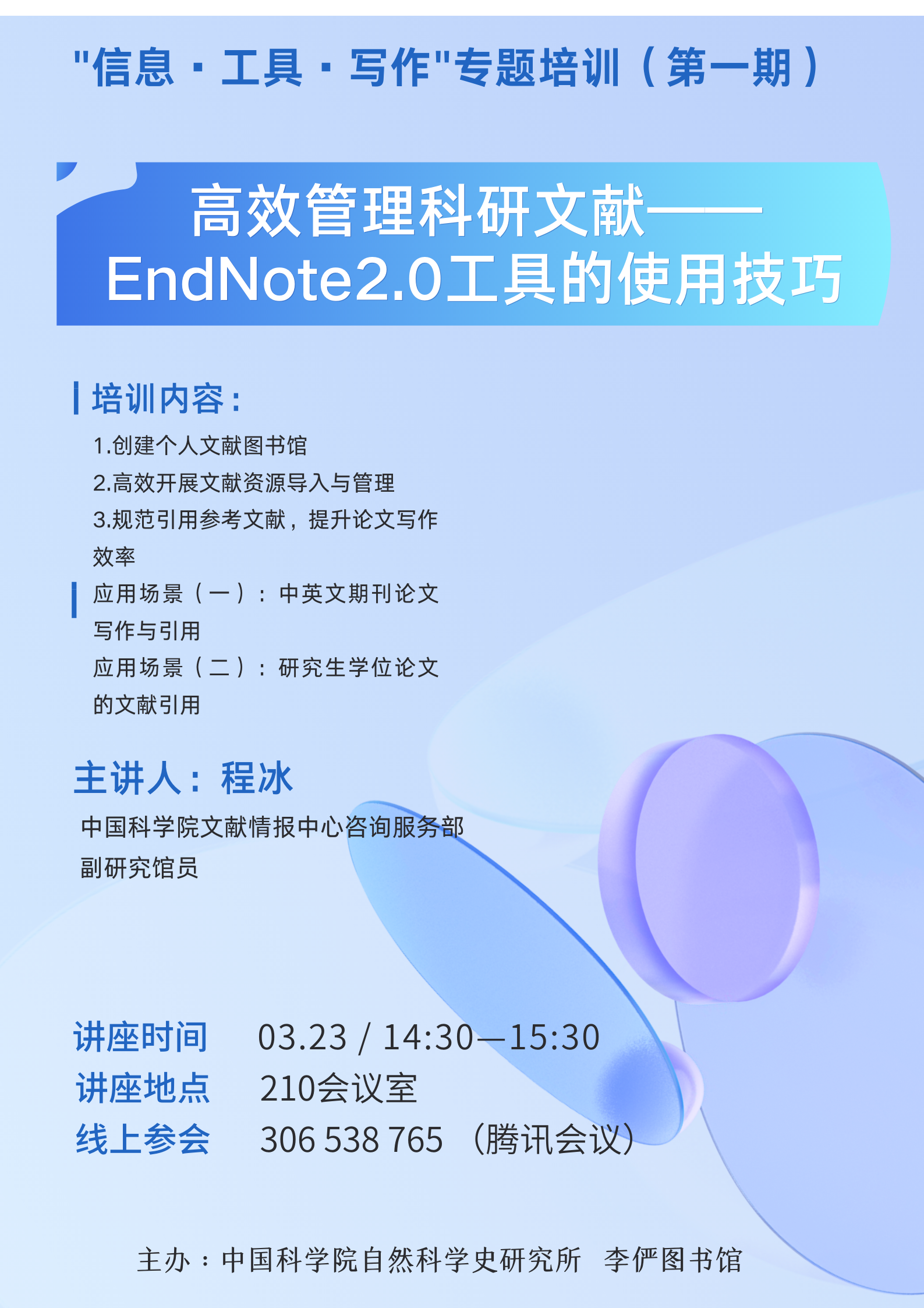 “信息·工具·写作”专题培训(第一期):高效管理科研文献一EndNote2.0工具的使用技巧