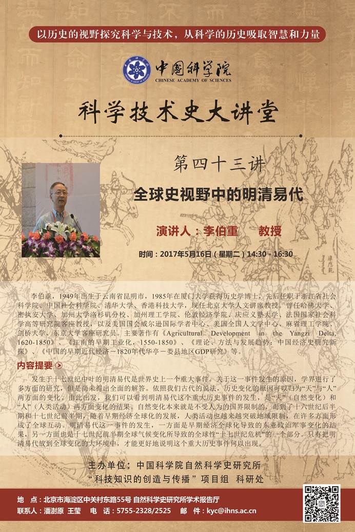 【科学技术史大讲堂,5月16日,14:30】李伯重:全球史视野中的明清易代