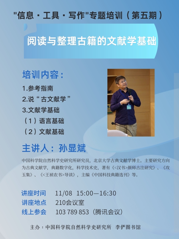 主 办 方 :中国科学院自然科学史研究所 李俨图书馆