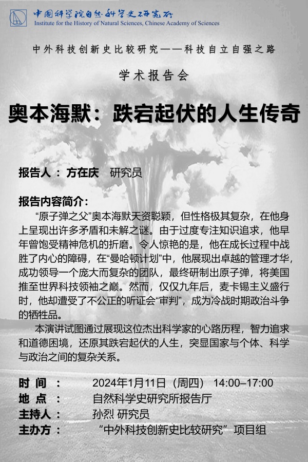本演讲试图通过展现这位杰出科学家的心路历程,智力追求和道德困境,还原其跌宕起伏的人生,突显国家与个体、科学与政治之间的复杂关系。