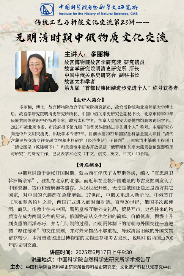 主 办:中国科学院自然科学史研究所世界科技史研究室、文化遗产科技认知研究中心