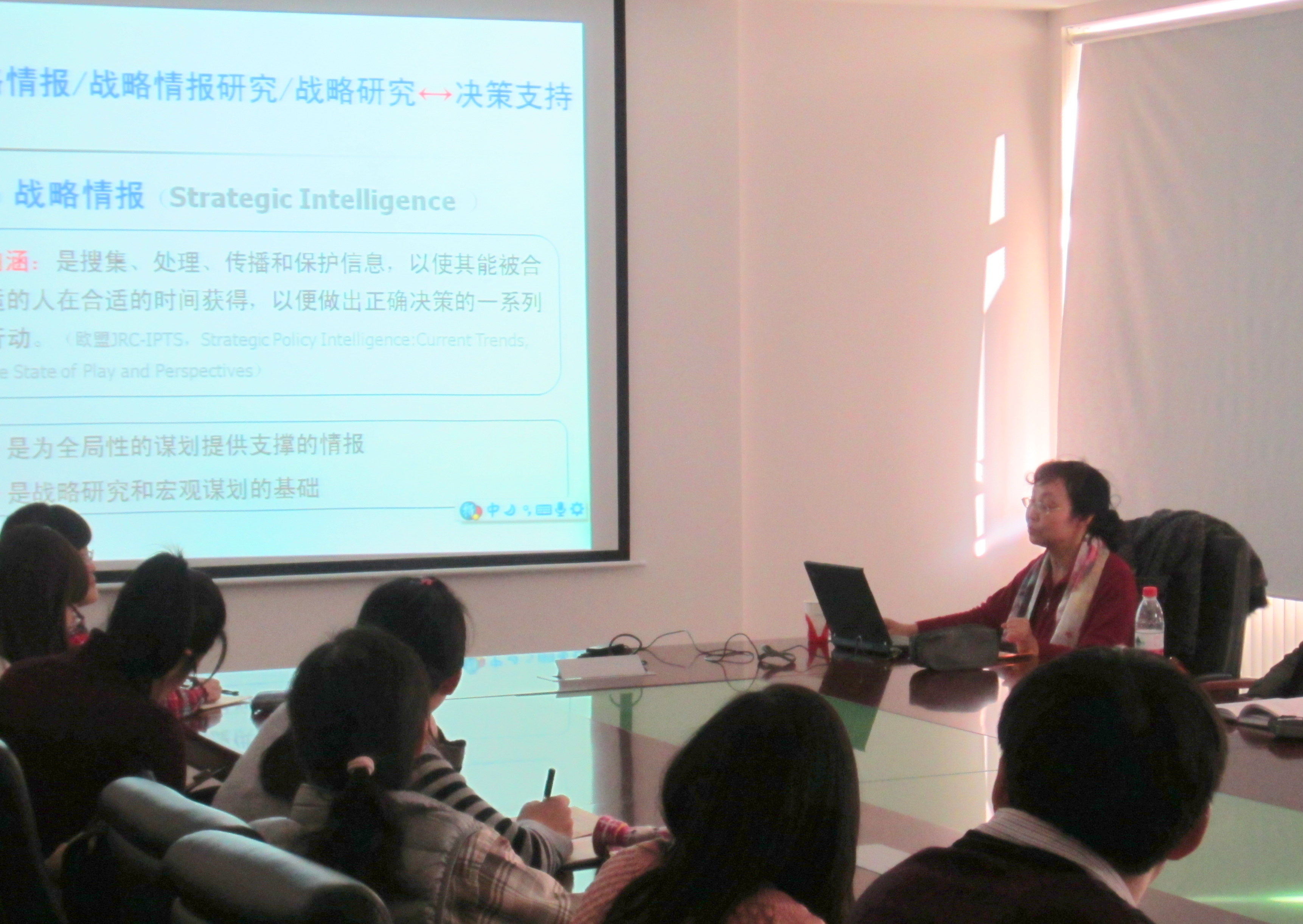 在此次学术报告会上,谭宗颖研究员阐述了战略情报、战略情报研究、战略研究与决策支持之间的关系,介绍了战略情报研究和技术未来分析的方法与技术工具,精辟地解释了战略情报研究的基本范式、主要方法及分析模式。谭宗颖研究员重点讲述了她主持和参与主持的国际科技比较监测与评价、国际科技竞争力研究、学科发展战略研究、世界科技发展前沿和热点分析等案例,极富有启发价值,在来自所内外听众中引起热烈反响。