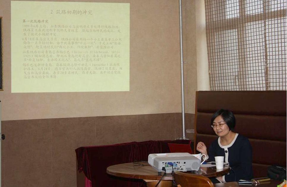 在本次下午茶主题活动中,副研究员王斌做了题为“从胶济铁路建设看技术转移中的冲突与适应”的报告。她主要通过分析胶济铁路建设中的两个事例及其中的影响因素,来说明技术转移中的冲突与适应是技术转移双方相互作用的表现和结果。报告结束后,王斌就选题视角的独特性、铁路建设中的“风水”问题等与大家展开了交流。