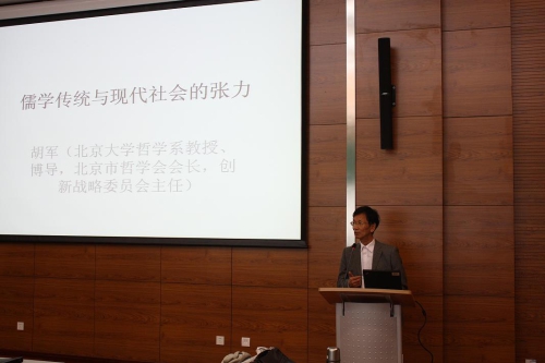 2014年9月30日下午,北京大学哲学系胡军教授在自然科学史研究所作学术报告,题目为“儒学传统与现代社会张力”。胡军教授是著名学者,是北京大学校人文学部委员,中国发展战略委员会常务理事,创新战略委员会主任,中国现代哲学会副会长,冯友兰研究会副会长兼秘书长,民进中央文化艺术委员会主任等。出版专著十余部,发表学术文章180余篇。刘益东研究员主持了本次讲座。来自自然科学史研究所、北京大学、北京首都师范大学等单位的学生和学者参加了本次活动。