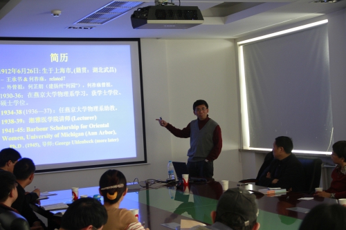 2014年12月12日,中国近现代科技史研究室学术活动举行。这次活动邀请纽约市立大学城市学院副教授胡大年做了题为“王承书在普林斯顿高等研究院”的学术报告,由郭金海研究员主持。来自所内外的20余位研究人员、研究生参加了活动。