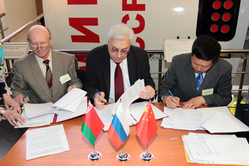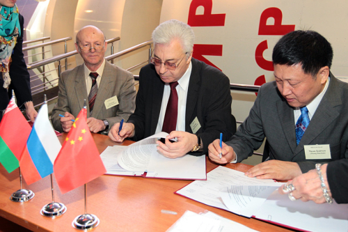 会上举行了俄罗斯科学院瓦维洛夫科学技术史研究所、中国科学院自然科学史研究所和白俄罗斯国家科学院社会学研究所,就建立“国际科学技术史研究中心”三方合作协议的签署仪式。巴图林教授、张柏春研究员、伊万诺夫教授分别代表俄、中、白三方机构签字。三方就共同感兴趣的重要科技史及相关议题,将联合开展多种形式的跨国学术合作研究与交流。