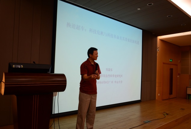 2018年6月9日下午,由中国科学院主办、中国科学院自然科学史研究所承办、中山大学马克思主义哲学与中国现代化研究所暨哲学系协办的中国科学院科学技术史大讲堂“走进校园”系列·中山大学专场暨第四十五讲、第四十六讲在中山大学锡昌堂801报告厅成功举行。讲座由中山大学马克思主义哲学与中国现代化研究所所长、教育部社会科学委员会委员、广东省伦理学会会长、广东省马克思主义学会会长李萍教授主持,中国科学院自然科学史研究所刘益东研究员、中山大学马克思主义哲学与中国现代化研究所暨哲学系徐长福教授应邀作学术报告,中山大学哲学系黄敏教授和马天俊教授担任评论人。两场报告的题目分别为“换道超车:科技危机与科技革命及其带来的新机遇”、“人口和GDP的关系模式对生态问题的影响”。有二百多名来自中山大学、华南师范大学、华南农业大学、华南理工大学和中国科学院等高校及科研机构的学者学生参加了本次活动。
