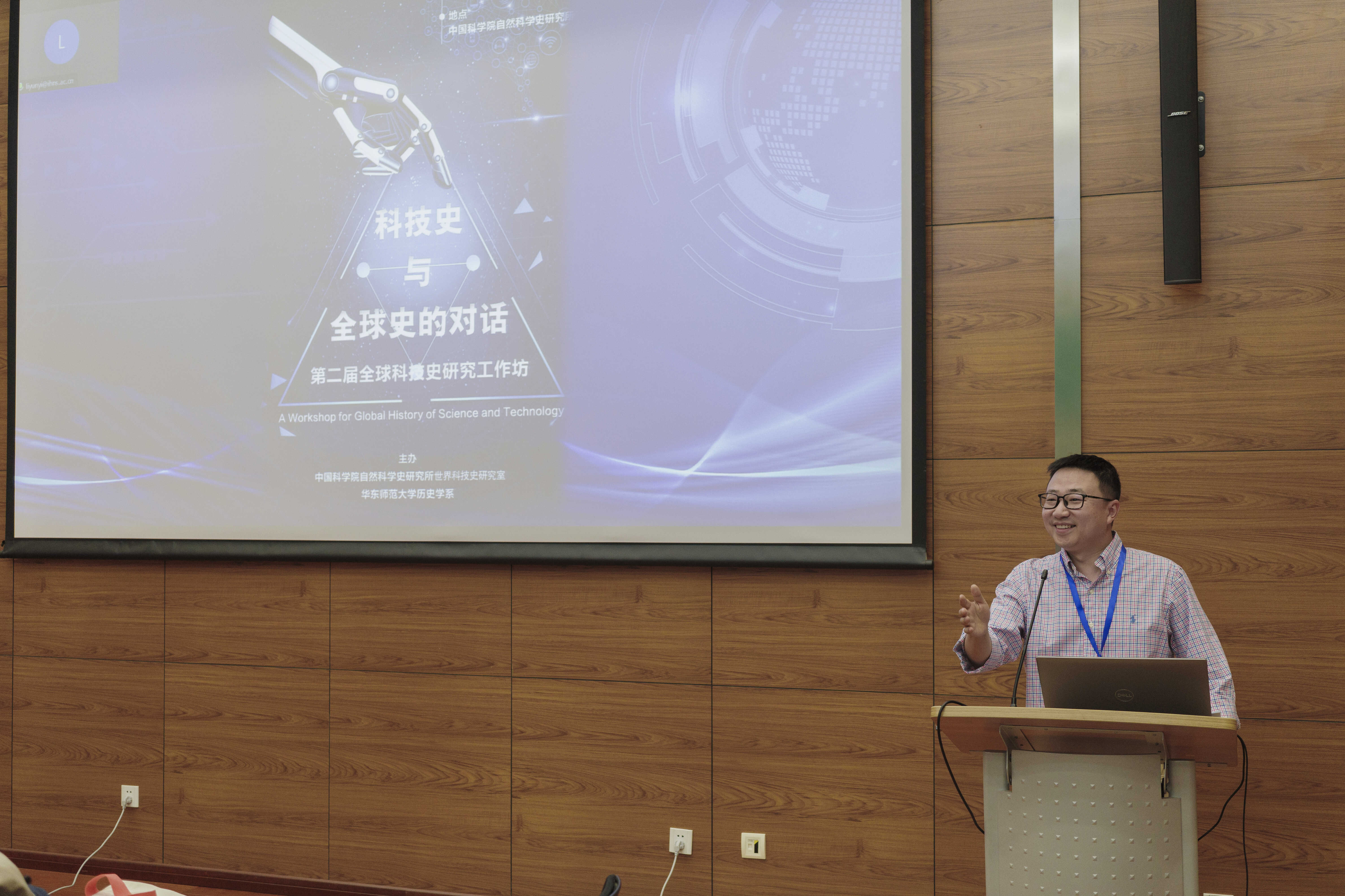 第一组学术报告由华东师范大学历史学系教授梁志主持。中国科学院自然科学史研究所学术委员会主任张柏春、华东师范大学历史学系教授、社会主义历史与文献研究院常务副院长姚昱、华东师范大学历史学系副教授刘衍钢和中国科学院自然科学史研究所青年副研究员李明洋四位学者围绕“全球视野下的知识流动”分别做了题为《如何估量20世纪50年代苏联技术援华的意义》、《中国橡胶种植:1950-1962》、《亚历山大与亚历山大里亚》以及《技术、政治与社会:20世纪50-80年代中国水泥船的发展》的主题报告。