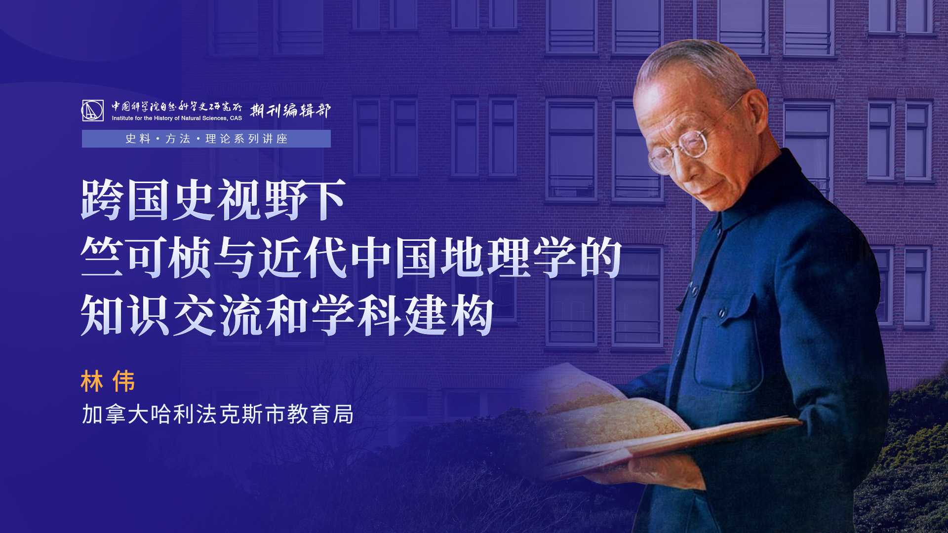 应中国科学院自然科学史研究所邀请, 2024年9月6日,林伟博士应邀在线做主题为“跨国史视野下竺可桢与近代中国地理学的知识交流和学科建构”的报告。讲座在线上线下同时进行,共有百余位师生参与。本次讲座是自然科学史研究所期刊编辑部主办的“弘扬科学家精神 纪念竺可桢先生”系列讲座的第三讲,作为“史料·方法·理论系列讲座”的一部分,得到中国科学院计算机网络信息中心的支持。