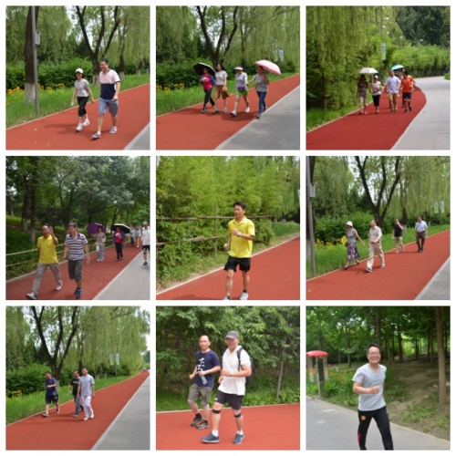 这天天公作美,空气质量良好,由于阴天,气温不高,适宜健步走活动。活动开始后,大家在奥林匹克森林公园的健步道上大步向前。有的摆开双臂,大步流星,一马当先。有的结伴而行,边说边走,并相互鼓劲。有的一边步行,一边欣赏沿途翠绿的树木,美丽的风景。5千米的路程,大家在一个小时之内就都走完了。到达终点的前8人,荣获一等奖,即郭金海、常佩雨、杜新豪、郭园园、刘亮、王建军、徐丁丁、郑诚。