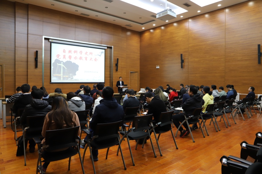2018年11月2日,自然科学史所召开党员警示教育大会。全体在职党员、研究生党员参加了大会。党委委员关晓武主持会议。