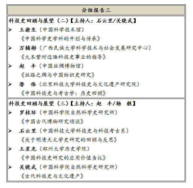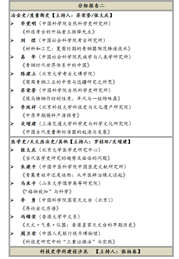 为缅怀老一辈科技史家的治学精神和学术贡献,此次学术研讨会特邀部分机构学术带头人做了专题报告。自然科学史研究所张柏春研究员、韩琦研究员、清华大学科技史暨古文献研究所冯立昇教授、同济大学建筑与城市规划学院常青院士、南京农业大学中华农业文明研究院王思明教授、自然科学史研究所华觉明研究员、中国科技大学科技史与科技考古系胡化凯教授、钱宝琮之孙钱永红先生、上海交通大学科学史与科学文化研究院江晓原教授、纪志刚教授、内蒙古师范大学科学技术史研究院郭世荣教授、清华大学社会科学学院科学技术与社会研究所刘兵教授等纷纷缅怀了竺可桢、李俨、刘仙洲、梁思成、万国鼎、王振铎、钱临照、钱宝琮、席泽宗、严敦杰、李迪、许良英等老一代科技史家“开辟草莱”的卓越贡献。