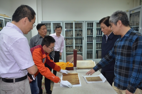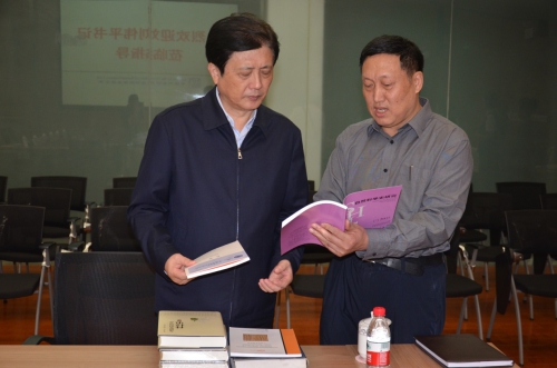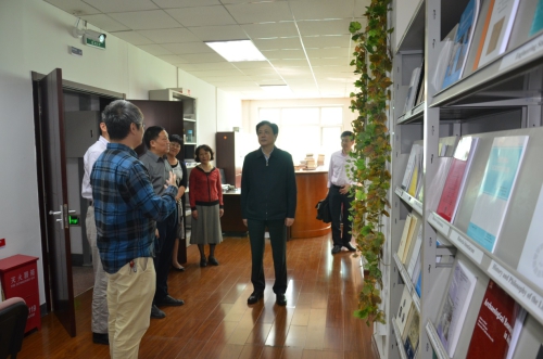首先,刘伟平在所务会成员陪同下参观李俨图书馆,听取了图书馆馆藏和研究所科研成果系列专著介绍。