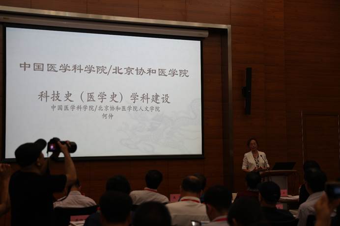 何仲教授介绍了中国医学科学院和北京协和医学院科技史暨医学史学科建设的历程及意义。何教授首先指出发展科技史研究的意义在于促进对医学本质的理解、加强科学技术知识体系的建构、培养科学态度和加强人才培养。中国医学科学院和北京协和医学院具有学科齐备、技术领先、历史文化沉淀深厚、档案资料丰富等研究优势,科技史相关工作主要围绕摸清家底、打好基础、建好平台等几个方面开展,主要研究方向涵盖医学科技发展史、医学教育史及思想史、机构史、基础医学等学科史等。当前医学史研究存在人才缺乏、研究平台建设不足、文献档案藏地分散、学科史研究尚未起步等问题,何教授提出加强人才队伍建设、保护研究资源和人才、加强学科研究必要性的宣传等对策。