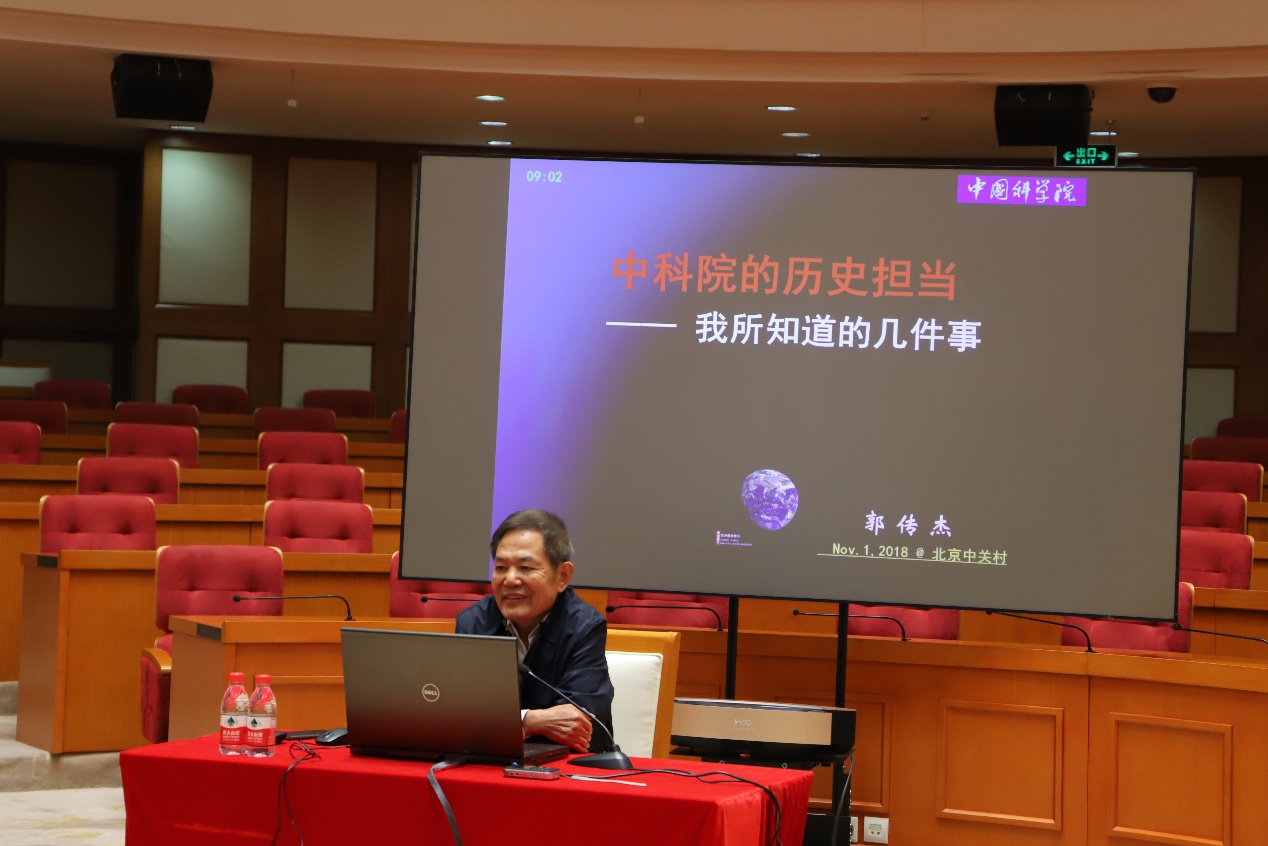 四位专家,在“中科院的担当”主题下的四场演讲,引领我们一起在中国科学院的成立纪念日追忆历史,缅怀先辈。上午,中国科学院党组原副书记郭传杰研究员以《中科院的历史担当——我所知道的几件事》为题,娓娓道来“863” “973”、香山科学会议、知识创新工程等在共和国科技史上有重要影响事件的来龙去脉,生动呈现中国科学院作为国家的战略科技力量,在祖国的科技事业发展中“看得远些、走得早些、担得多些、贡献大些”的担当意识。可以说,郭传杰研究员是共和国很多重要科技事件的亲历者,他的亲历、亲见、亲闻,不仅能够帮助公众更好地了解这些重要科技事件,更是中科院历史担当的生动体现。