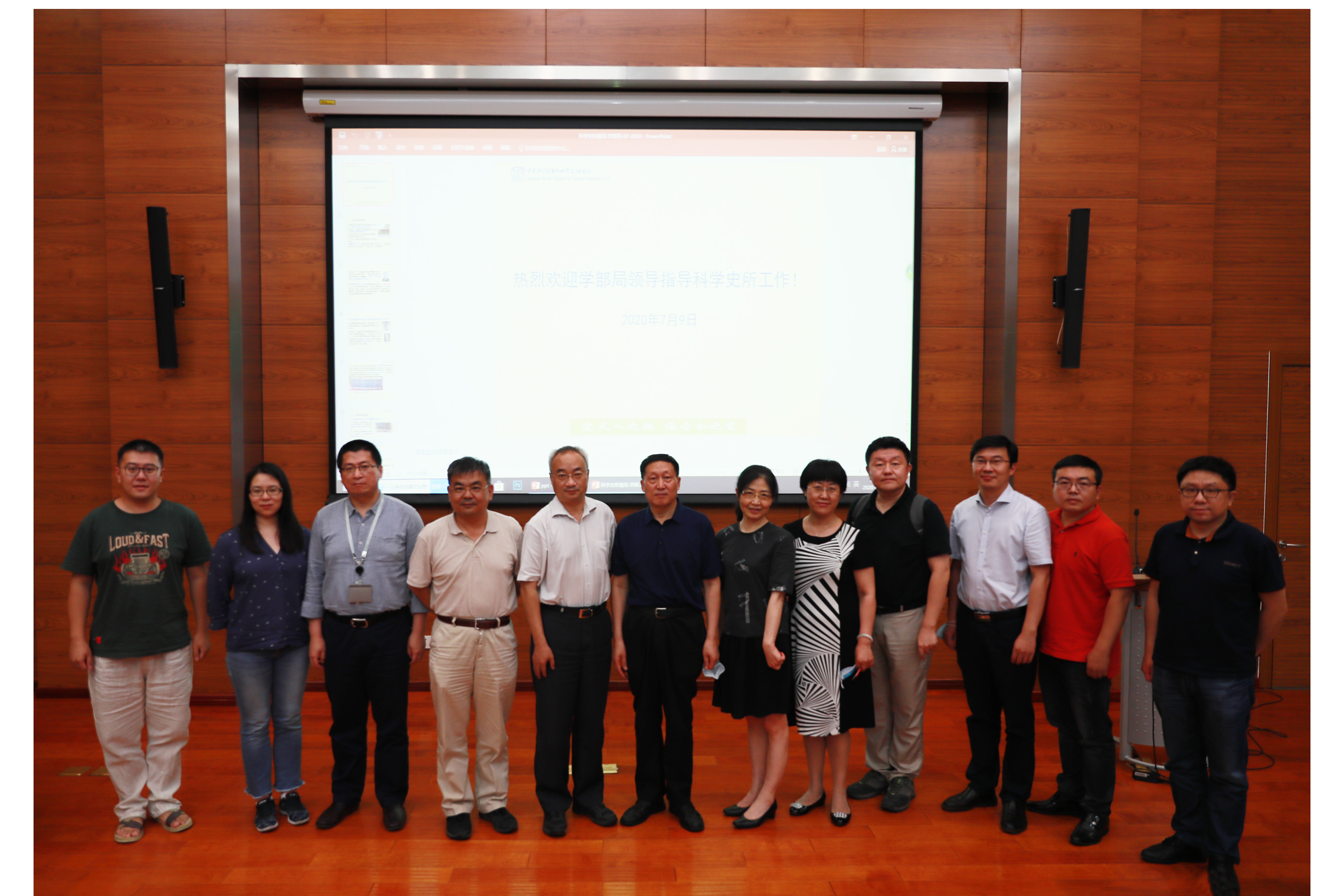 2020年7月9日,中国科学院学部工作局(以下简称“学部局”)王笃金局长带队调研自然科学史研究所(以下简称“科学史所”)。在学术报告厅,双方围绕发挥科学史所学科特色优势支撑学部局工作需要展开座谈。王笃金局长、苏荣辉副局长、石兵副局长、学部局相关处室同志,科学史所所长张柏春、党委副书记兼纪委书记赵力、科研和管理部门相关同志参加会议。座谈会由张柏春主持。