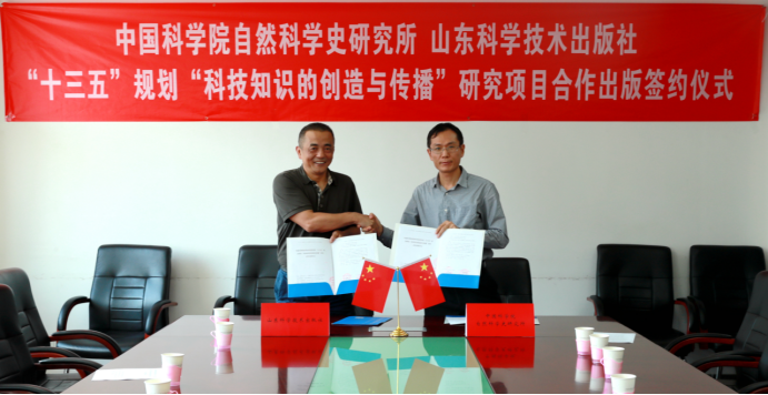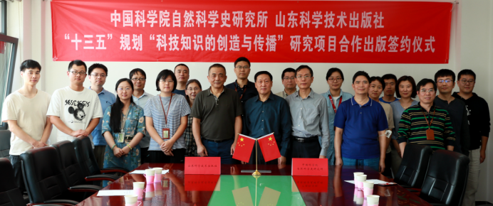 9月22日,中国科学院自然科学史研究所和山东科学技术出版社举行了“十三五”规划重大突破项目“科技知识的创造与传播”研究合作出版签约仪式。出版社赵猛社长、泰山基金办公室杨磊副主任,研究所张柏春所长、关晓武副所长(“科技知识的创造与传播”研究项目负责人)、课题组负责人和代表及相关管理部门同志与会。会议由关晓武主持。