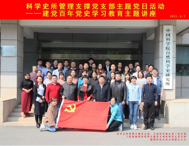 4月7日,由科学史所管理支撑党支部、中国科学报社第三党支部、工程热物理所管理支撑党支部和研究生党支部、物理所机关党支部联合主办的主题党日活动——建党百年党史学习教育主题讲座在科学史所学术报告厅举行,科学史所党委副书记、副所长赵力,党委副书记、纪委书记王维佐,中国科学报社党委委员、副总编辑张明伟参加此次活动。会议由科学史所管理支撑党支部书记张宗鹤主持。