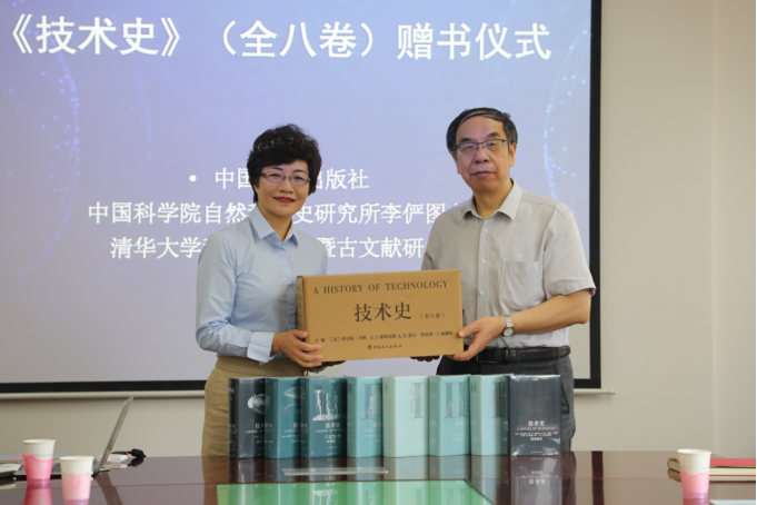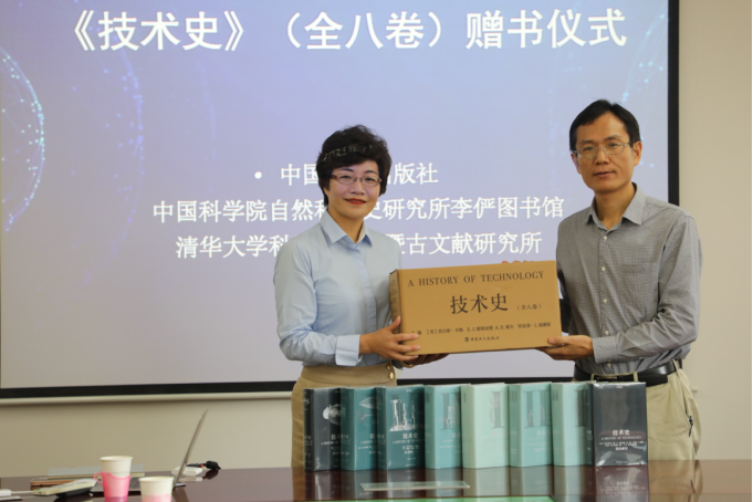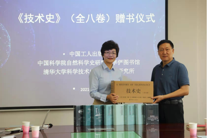 2021年7月30日上午,中国工人出版社与中国科学院自然科学史研究所(以下简称“科学史所”)、清华大学科学技术史暨古文献研究所在科学史所举行译著《技术史》(全八卷)赠书仪式。中国工人出版社社长、党委书记王娇萍,中国工人出版社万川项目组负责人、副编审董虹,清华大学科学技术史暨古文献研究所所长冯立昇教授,科学史所副所长(主持工作)关晓武研究员、学术委员会主任张柏春研究员及管理支撑部门相关人员出席了活动。赠书仪式由关晓武主持。