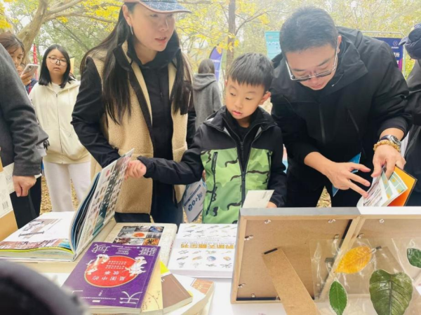 小朋友及家长们认真翻阅所展图书