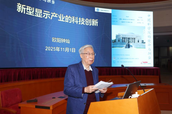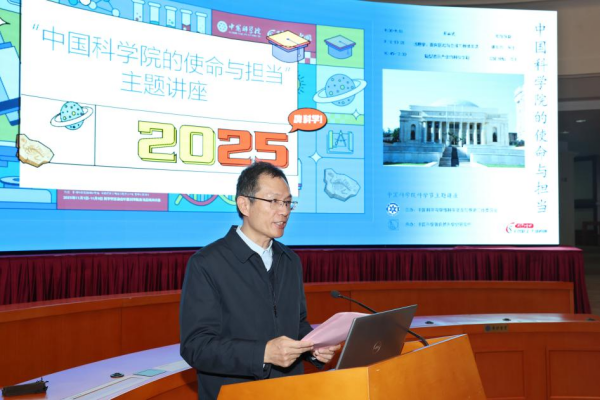 中国科学院学部工作局三级职员(正局级)周德进出席活动并致辞。他指出,“中国科学院的使命与担当”系列讲座是践行中国科学院“与祖国同行、与科学共进”理念的重要载体,既能引导科研人员深化对国家战略科技力量核心使命的认知,更能搭建科学普及的桥梁,让创新精神浸润公众尤其是青少年心田,为科技创新培育后备力量。