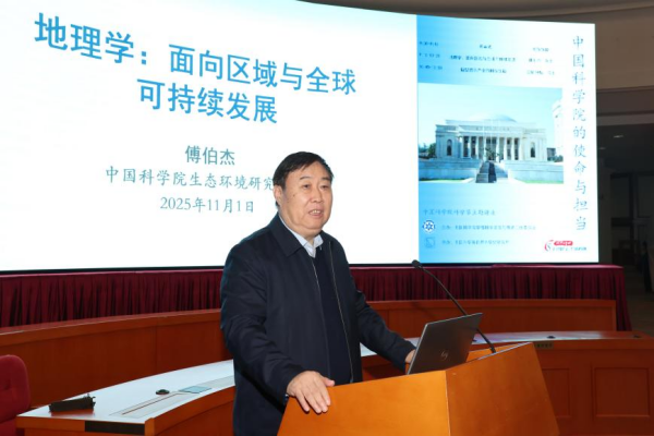 两位院士结合自身研究领域,带来了兼具理论深度与实践价值的精彩报告。傅伯杰院士以《地理学:面向区域与可持续发展》为题,系统阐释了地理学作为综合学科的核心价值——以多维视角和系统思维破解人地关系难题、服务人类发展。他在梳理可持续发展理念与地理学学科演进脉络的基础上,重点剖析了区域及全球可持续发展面临的挑战,并结合自身科研实践,展示了地理学如何立足国家需求提供决策支撑。尤其提及他领衔提出的“自然关系指数(NRI)”这一全球创新框架,生动印证了地理学在推动人与自然共同繁荣中的独特作用,彰显了基础研究服务国家高质量发展的实践路径。