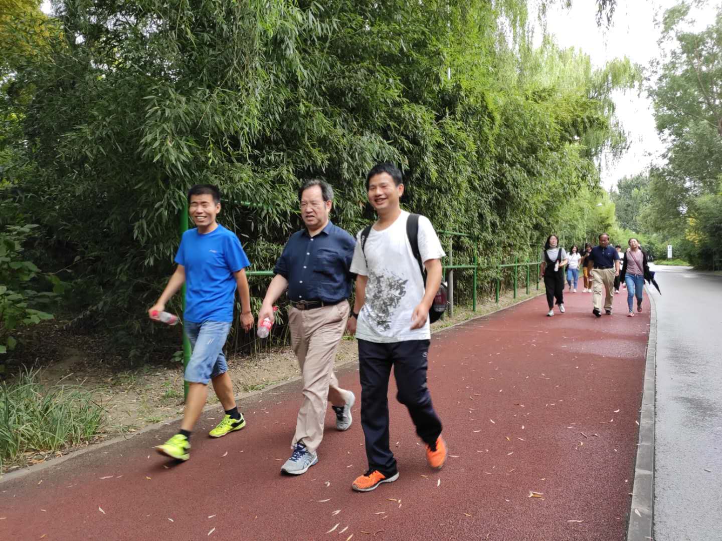 下午14:00,师生们在研究所大门集合,乘大巴来到了奥林匹克森林公园,在公园门前合影留念。一别前几日的艳阳天,秋风送爽,师生们迎着丝丝凉风、微微细雨,热情高涨地开始了健步走。在森林公园美丽的秋景和宜人的空气中,大家既积极竞赛、又在赏景中增进了沟通与交流,一路谈笑风生,在愉快又充满活力的氛围中完成了全程5公里的健步活动。最后,曾雄生老师团队率先抵达终点,韩毅老师团队紧随其后,张志会老师团队和高璐老师团队并列第三。