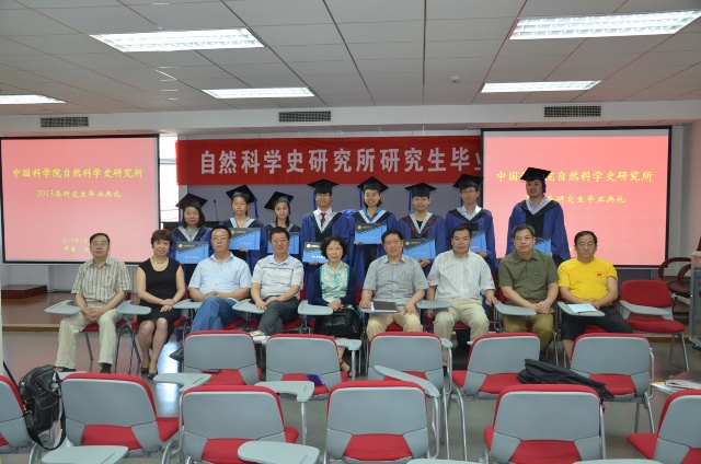 2013年7月5日,自然科学史研究所举行2013届研究生毕业典礼,所长张柏春、党委书记袁萍、副所长王扬宗、副所长孙小淳出席典礼,研究生导师代表、毕业生及家属、在读学生等40多人参加了典礼。