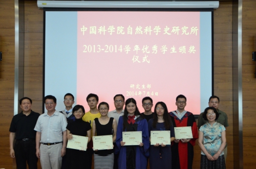 2014年7月4日下午,中国科学院自然科学史研究所研究生毕业典礼暨学位授予仪式在报告厅举行。所长张柏春、党委书记袁萍、副所长王扬宗、孙小淳出席典礼。研究生导师代表、毕业生、在读学生等50多人参加了典礼。典礼由2012级硕士研究生宋元明主持。