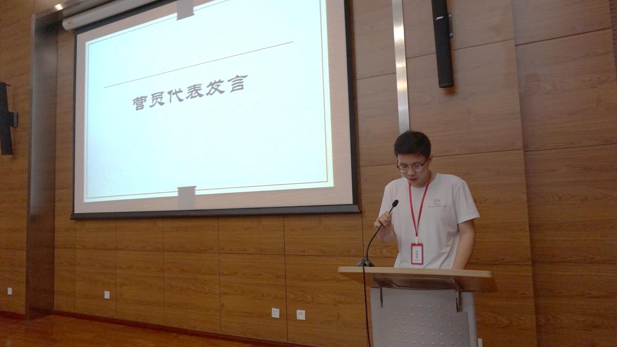 营员代表文健、高加康进行闭营仪式发言。他们首先对在此次夏令营中的辛勤付出的老师与志愿者们表达了感谢,他们表示通过此次夏令营不仅收获了友谊,更汲取到更多感兴趣的知识,找到了未来努力的方向。夏令营精彩的讲座加深了营员们对科技史的认识与了解;格致下午茶的师生交流环节让营员们进一步明确了自己的兴趣领域;在参观与实践活动中,营员们体会到了先进科技与社会的互动,理论与实际的交融,更感受到“读万卷书”与“行万里路”的有机结合;在成果交流活动中,营员们精诚合作,充分发挥特长,互相激励与学习,为此次夏令营之行提交了一份满意的答卷。他们也希望未来能够进入研究所进一步学习。