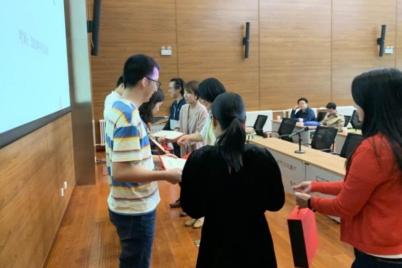 会议第三项,由纪巧、王莹、魏毅、付韵蕾为2019-2020学年研究生会成员颁发荣誉证书,他们分别是研究生会主席李盼飞、副主席刘苗、组织委员陆晶晶、宣传委员袁瑞、生活委员朱昊。