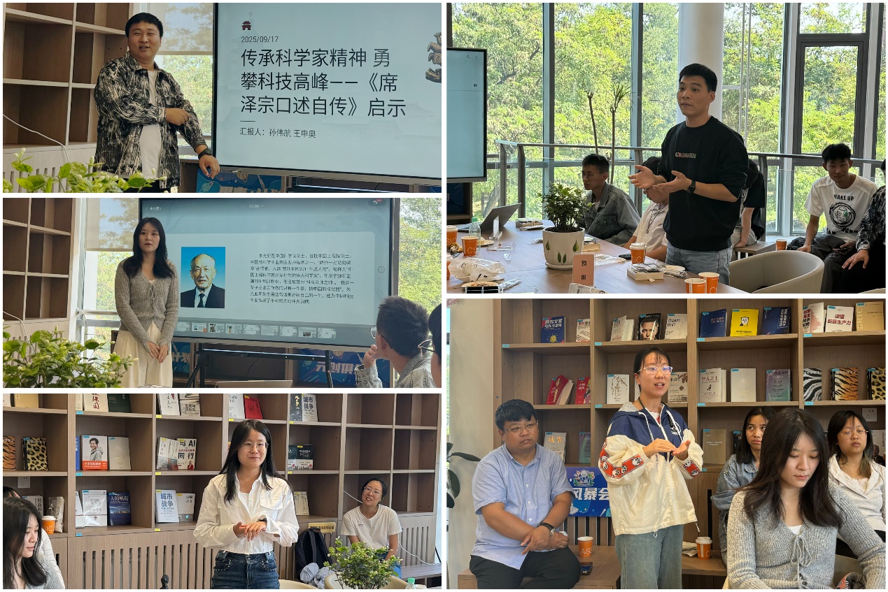午间工作坊中,两所学子围绕科学家精神展开了深度交流。科学史所硕士生钟达闻分享了“两弹一星”功勋朱光亚先生的报国故事。他她回顾了朱光亚先生从1949年号召留美学子回国,到领导核武器研制实现“两弹”突破的奋斗历程。朱先生“国家需要即专业”的坚定信念,在青年学子中引发了强烈共鸣。钟达闻借此呼吁,青年一代应以先辈为指引,在专业领域传承创新传承,为科技强国贡献力量。随后,科学史所博士生孙伟航以《席泽宗口述自传》为引,回顾了席泽宗院士的科研生涯。他认为,席先生的学术人生不仅是一部个人“直面困境、执着钻研”的奋斗史,更是老一辈科学家“协同创新、格局开阔”的生动缩影。席先生所倡导的“先专后通”研究方法、“扎根本土”学术立场和“鼓励争鸣”包容态度,也为当代科研工作者带来了宝贵的启示。物理所吴令安研究员的学生张越溪,也分享了导师在生活中节俭朴实、在科研中笃实勤勉、对学生真诚热爱的点滴故事,使在场师生对一位杰出科学家的形象有了更立体、更感性的认识。物理所博士新生胡涛就当日活动发表感受,本次活动不仅通过参观、聆听报告学习到了知识,更是带来了心灵与精神上的震撼与洗涤,在入学之初迷茫之际,这些故事与精神像指路的灯塔,为他指明了未来科研之路的方向,唯有传承科学家精神,方能在科技高峰的攀登中持续突破,为国家科技发展贡献力量。