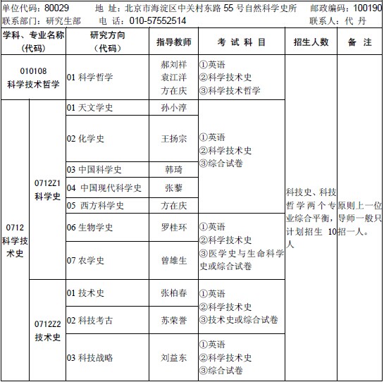 中国科学院自然科学史研究所2015年博士学位研究生招生目录