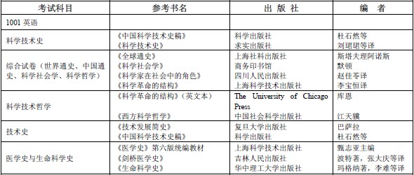 中国科学院自然科学史研究所2015年博士学位研究生招生参考书目