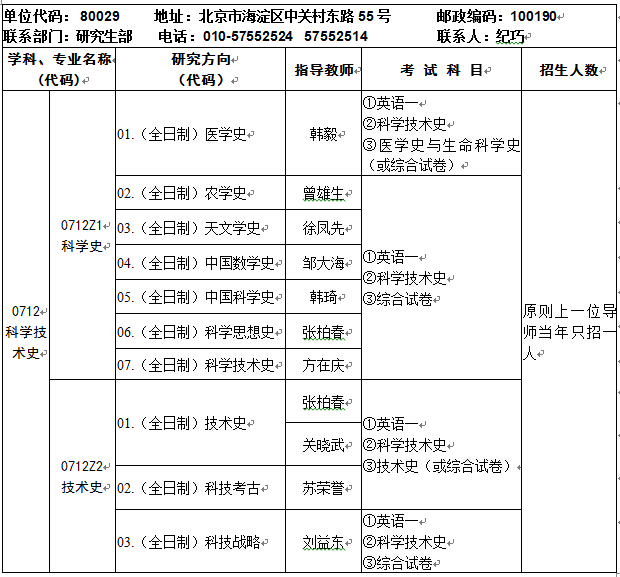 自然科学史研究所2017年招收攻读博士学位研究生专业目录