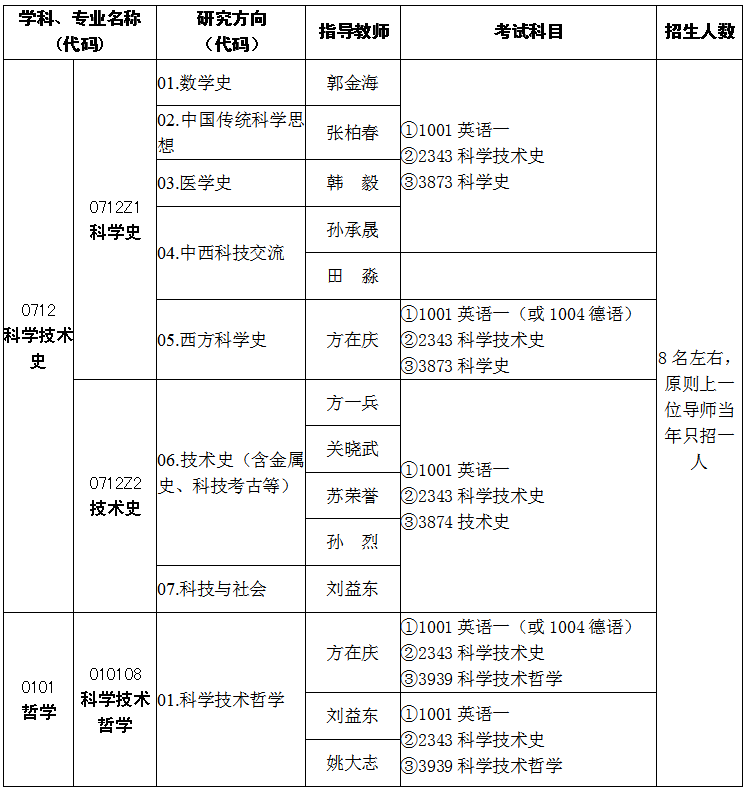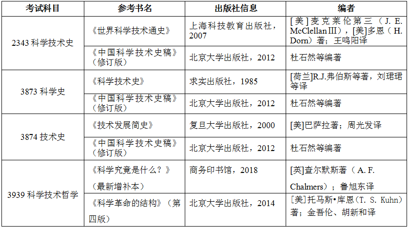 自然科学史研究所2020年博士学位研究生招生专业课参考书目