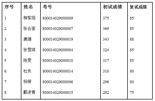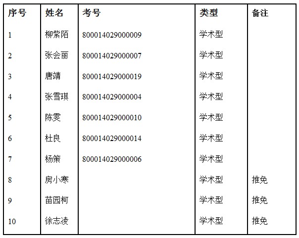 根据初试和复试成绩,经所招生领导小组讨论,决定拟录取以下10名考生为自然科学史研究所2014年统考硕士研究生(排名不分先后):
