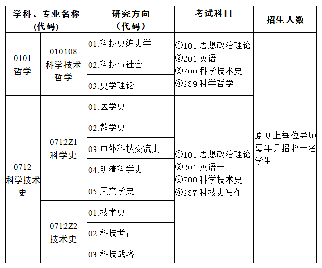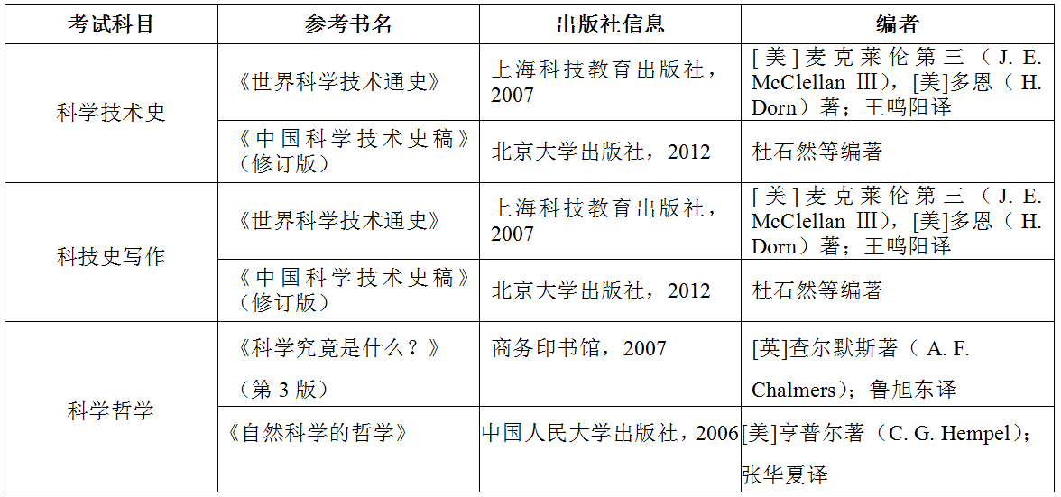 自然科学史研究所2019年硕士学位研究生招生专业课参考书目