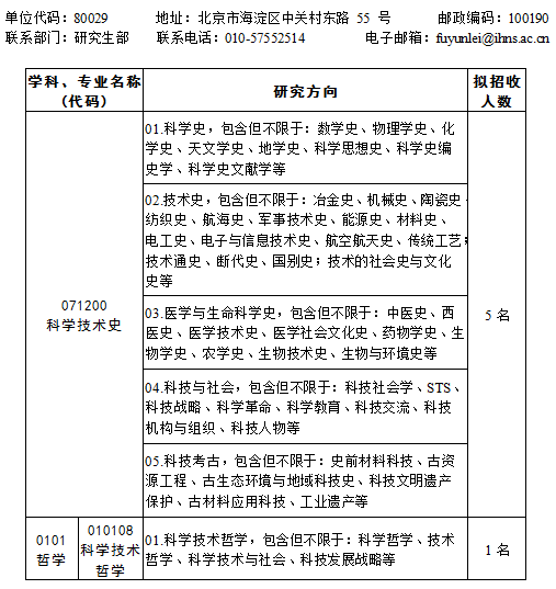 自然科学史研究所2023年推荐免试硕士研究生招生专业目录