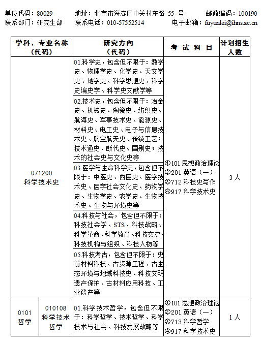 注:1.除专项计划外,科学技术哲学专业预计招生总人数为1人,未接收推免生,将用来招收统招统考生。